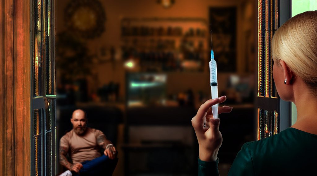 A large man with a bit of a gooey center, Trace is a Hollywood tattoo artist still finding his footing after battling the demons of his past. His intimidating appearance belies a softer side, a man who’s really just an artist at heart, happy to get to apply his craft and hang out with his dog, Sabbath.